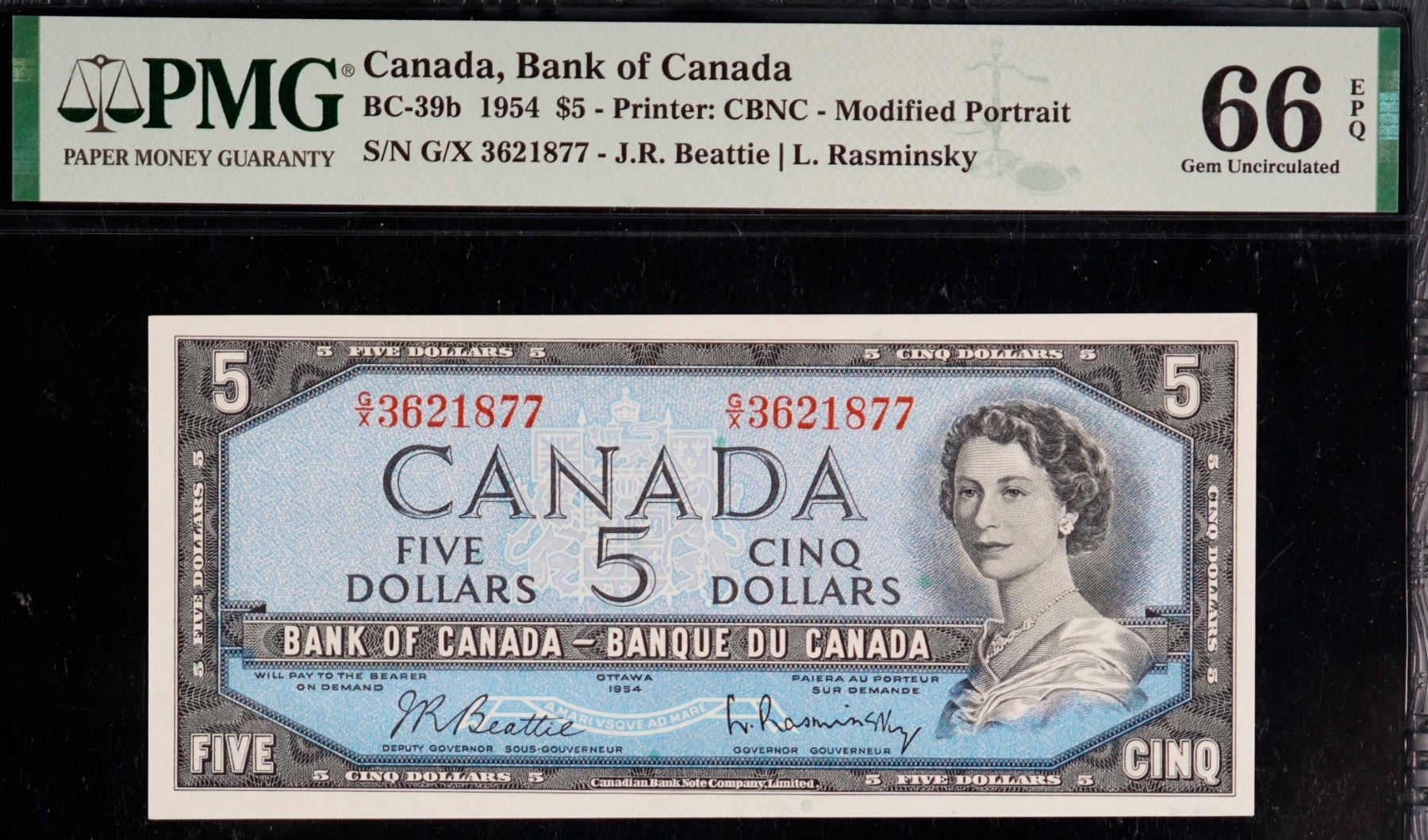 1954 $5 BC-39b #GX3621877, PMG Superb Gem Uncirculated-66EPQ.