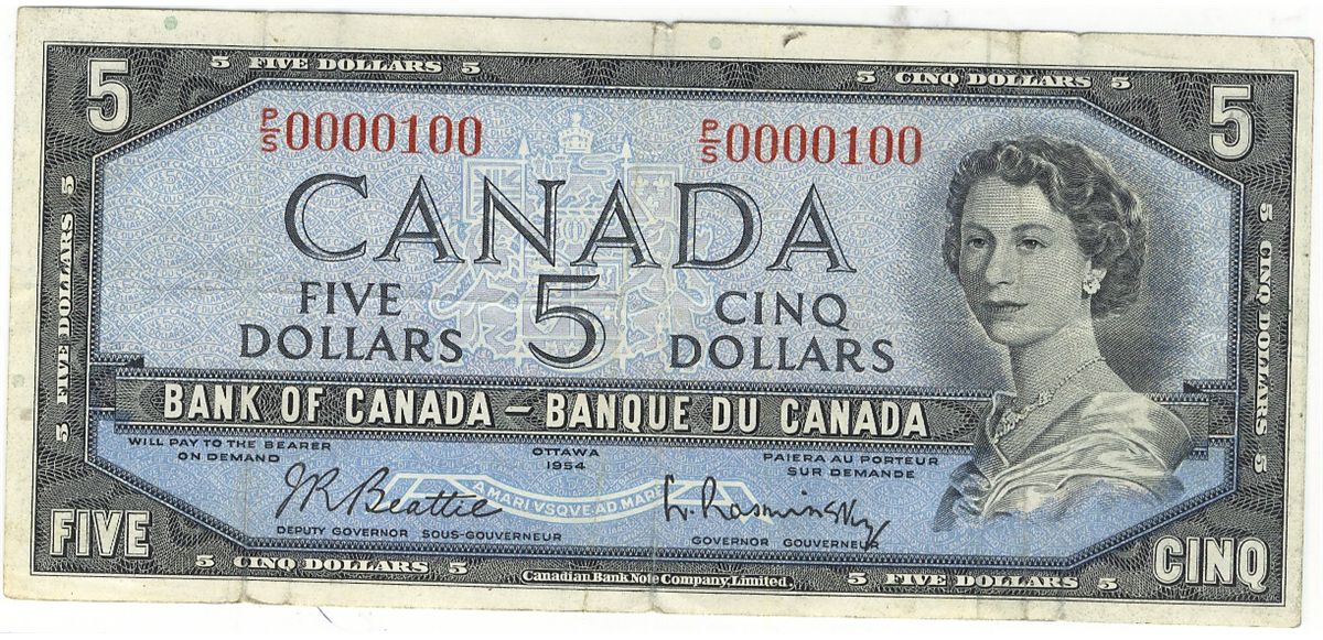 1954 $5 BC-39b LOW SERIAL #:P/S0000100 FINE +.