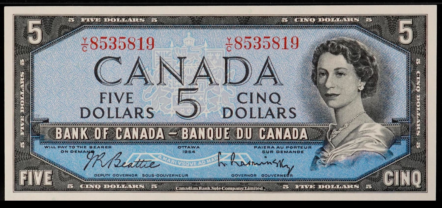 1954 $5 BC-39b #Y/C 8535819 Changeover PMG Splendid Gem Uncirculated-68 EPQ.  An exceptional high grade example with great centering and exceptional paper quality. Among the finest examples. Worth a premium bid.