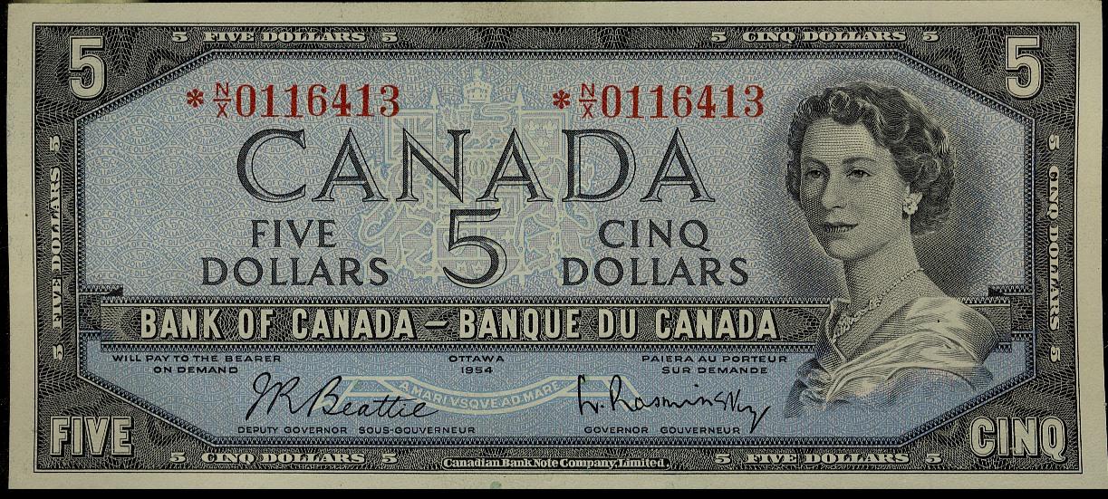 1954 $5 BC-39bA Beattie-Rasminski *N/X0116413 EF+