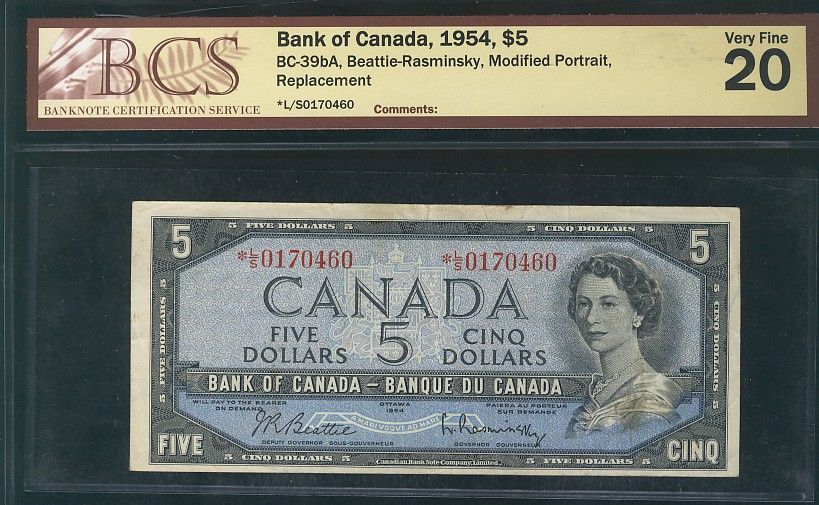 1954 $5 BC-39bA #*LS0170460 BCS VF20. Under appreciated and difficult replacement to find.