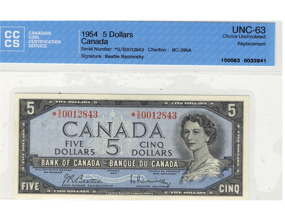 1954 $5 BC-39bA Replacement *S/S0012843 CCCS UNC-63.