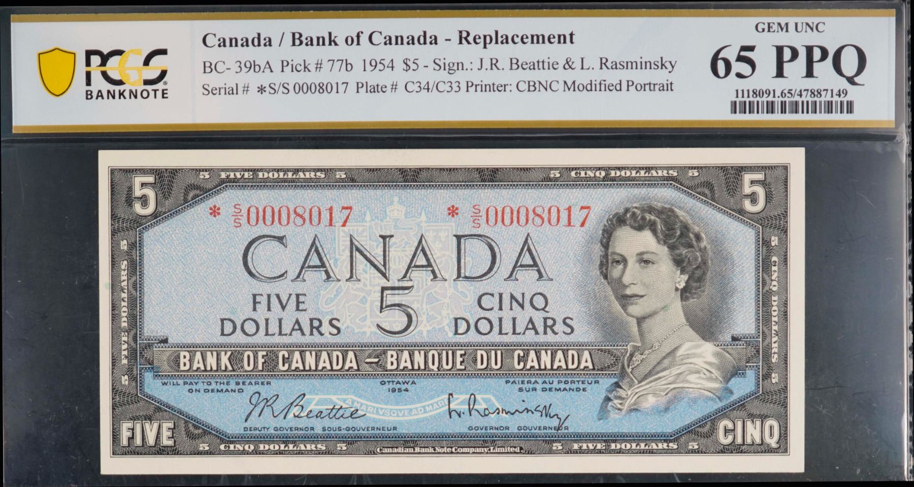 1954 $5 BC-39bA #*SS0008017, PCGS Gem Uncirculated-65PPQ.