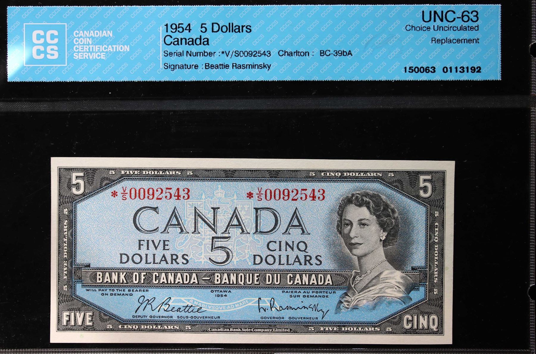 1954 $5 BC-39bA #*V/S0092543 CCCS UNC63