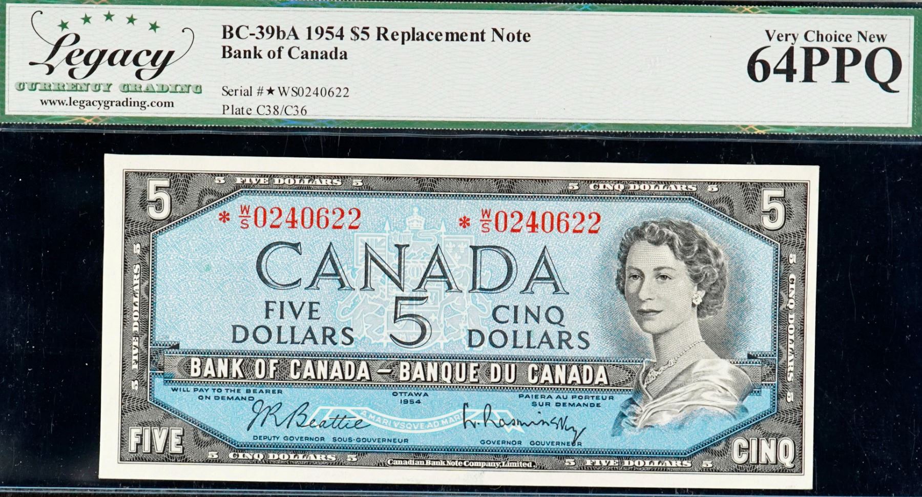 1954 $5 BC-39bA #*WS0240622, Legacy Currency Grading Choice Uncirculated-64PPQ.