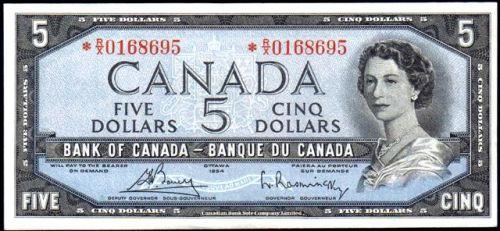 1954 Five Dollars Bouey-Rasminsky, BC-39cA, serial number *R/X0168695, Uncirculated