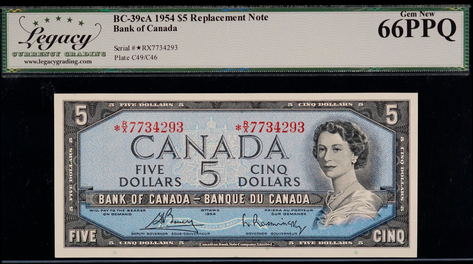 1954 $5 BC-39cA #*R/X7734293, LCG Superb Gem Uncirculated-66PPQ.