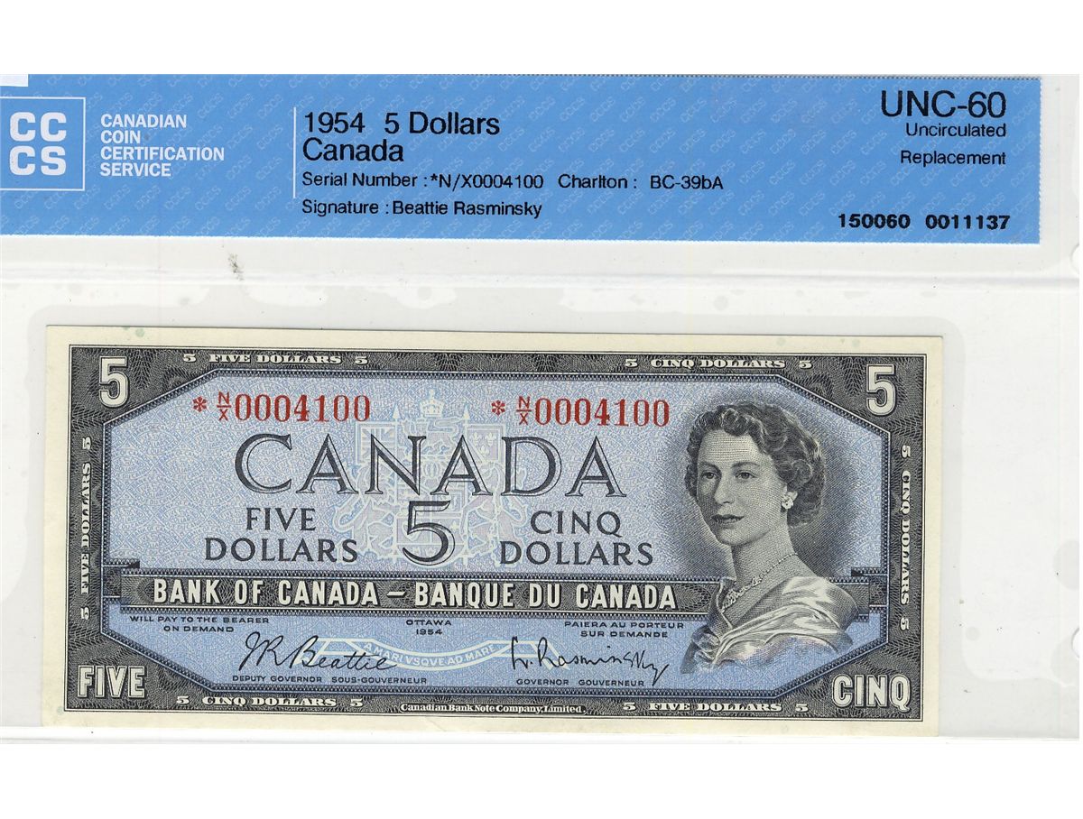 1954 $5 BC-39cA Replacement Rare *N/X, CCCS UNC-60.