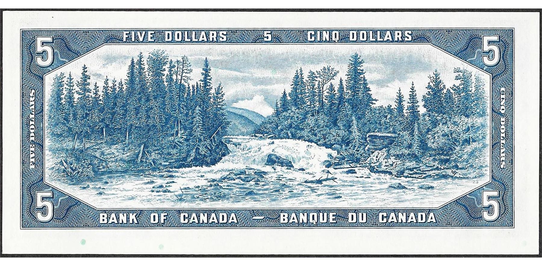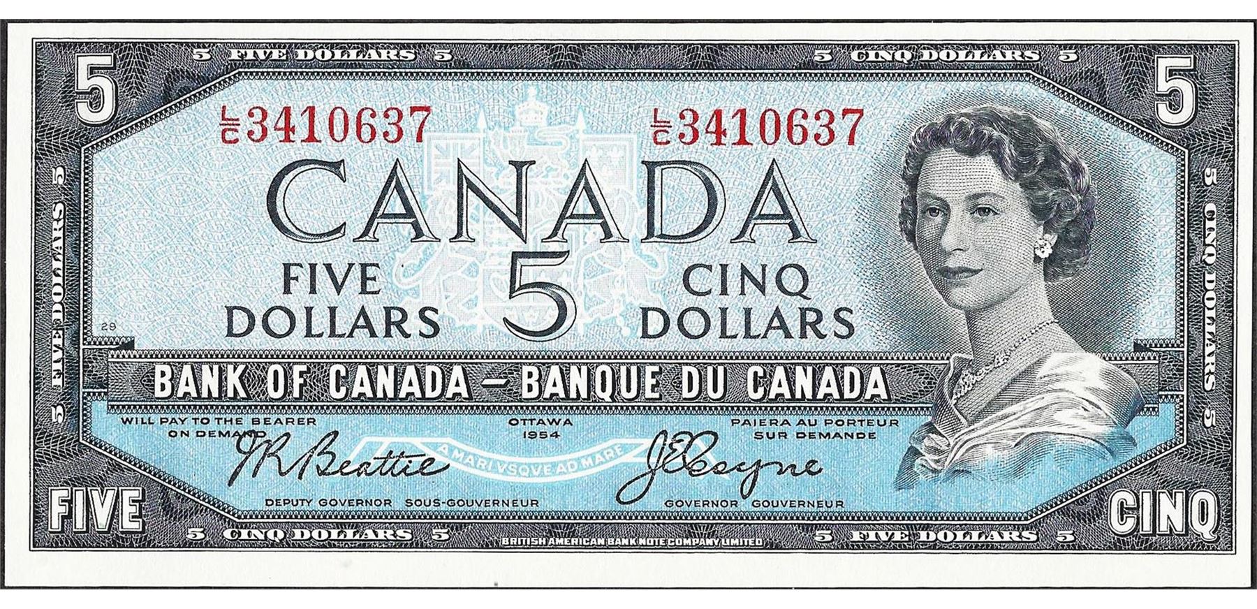 One 1954 $5 Bank of Canada Note.