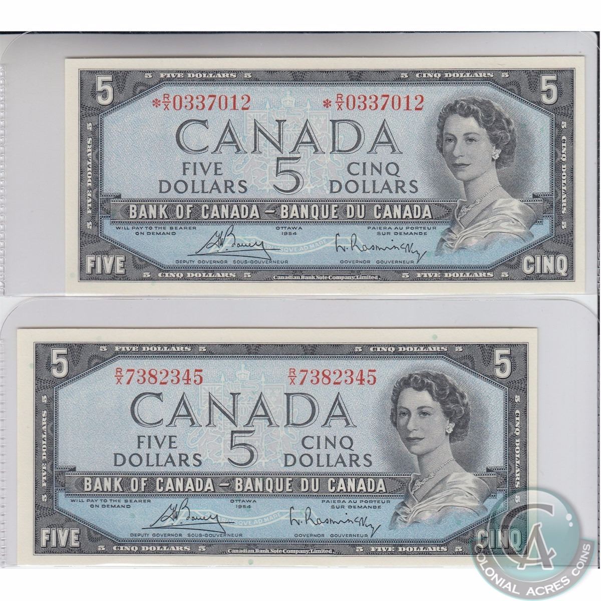 1954 $5 Bouey-Rasminsky R/X & replacement *R/X (Below 0360000) BC-39b & BC-39cA Uncirculated or better. 2pcs