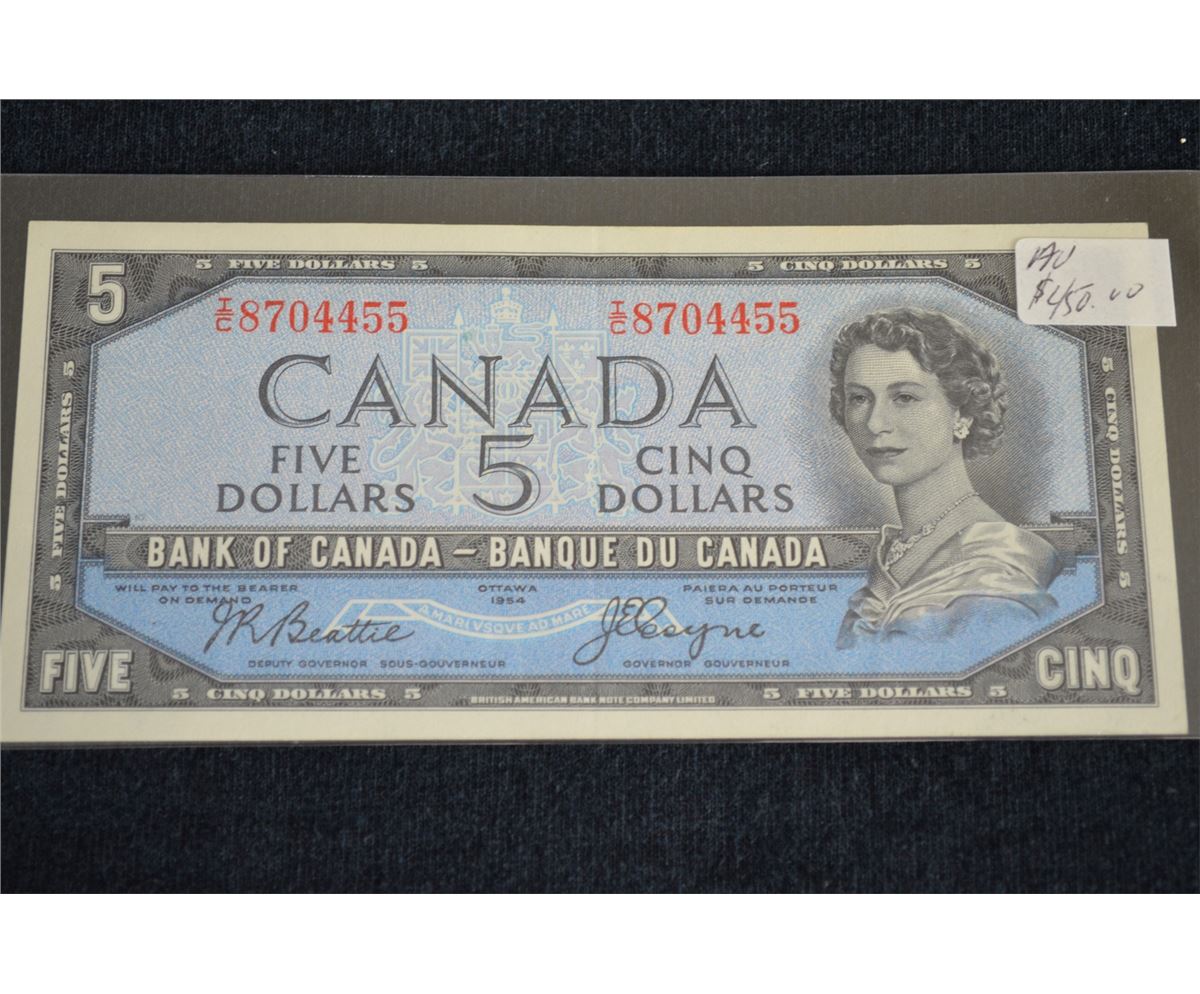 1954 $5 Canada Note - Devils Face - CUNC-GUNC - IC 8704455 - BC-31b - Beattie/Coyne - Value: $550.00