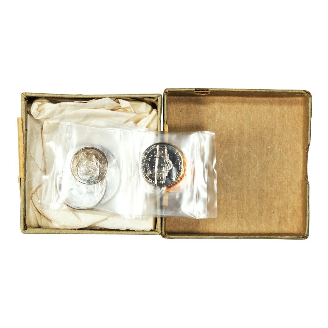 Bidders are advised that certain types of plastic may react with a coin's metal or transfer plasticizer to notes and may cause damage. Caution should be used to avoid storage in materials that are not inert.
