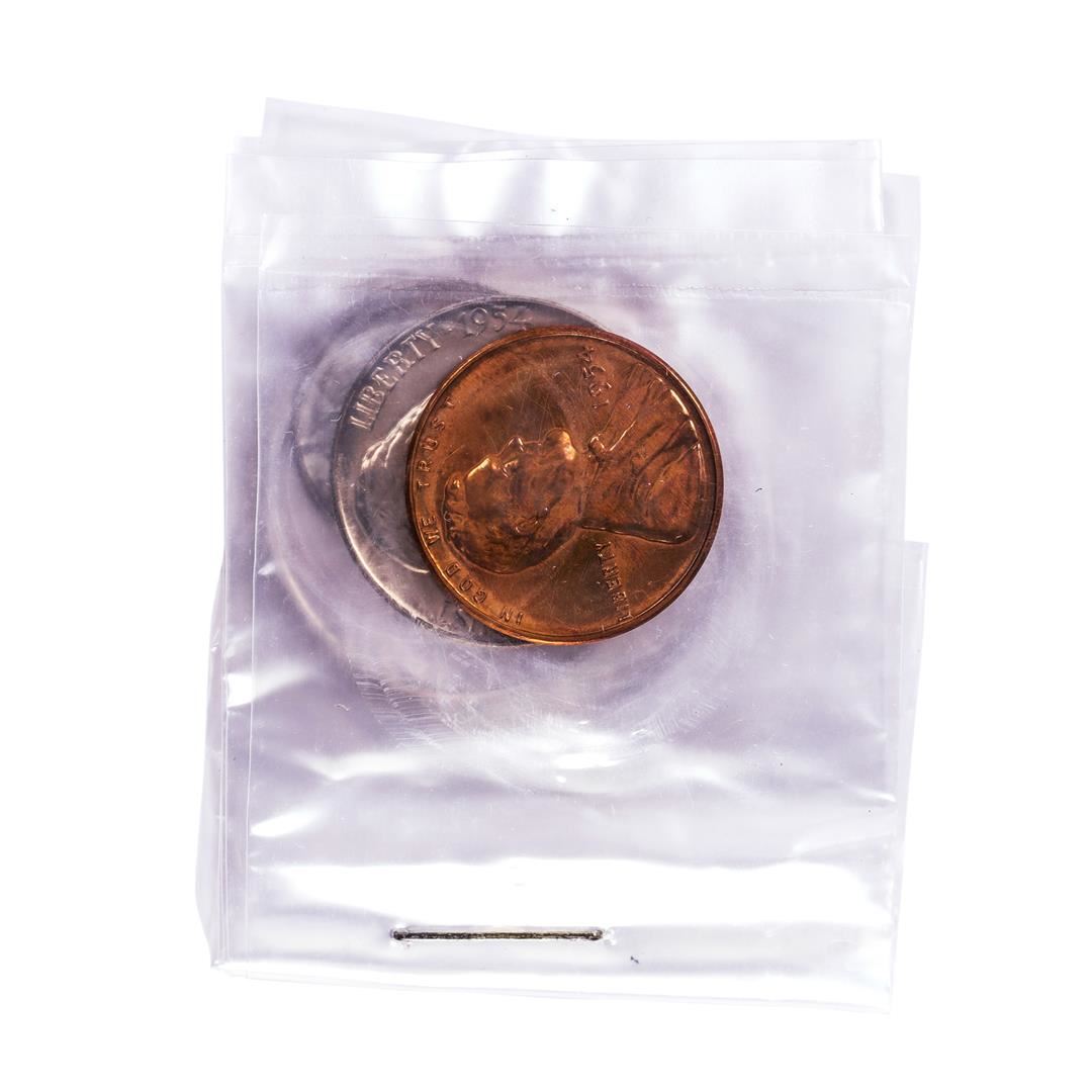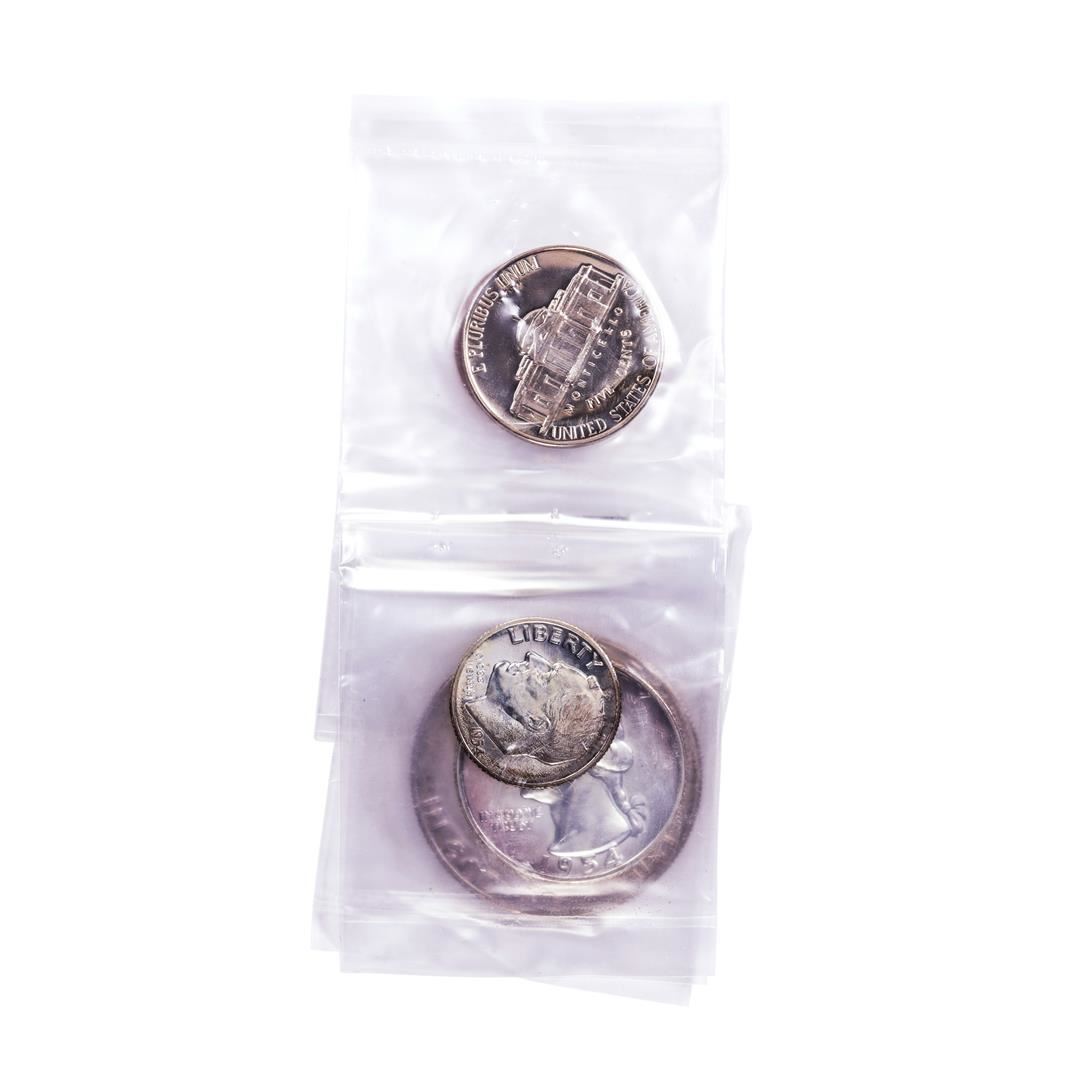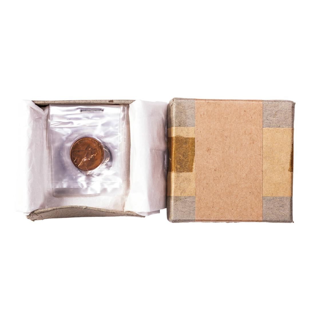 Bidders are advised that certain types of plastic may react with a coin's metal or transfer plasticizer to notes and may cause damage. Caution should be used to avoid storage in materials that are not inert.