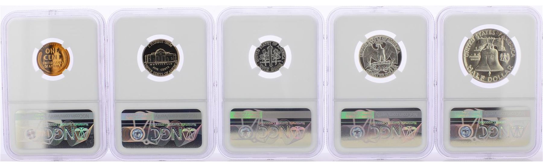 One 1954 (5) Coin Proof Set NGC Graded PF66RD/PF67/PF68. NGC Certified.