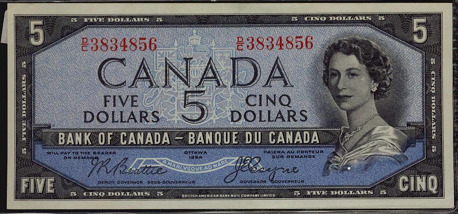 1954 $5 DF BC-31b #D/C3834856. AU-UNC example.