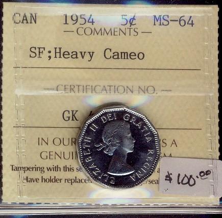 1954 5¢ SF ICCS MS64 Heavy Cameo