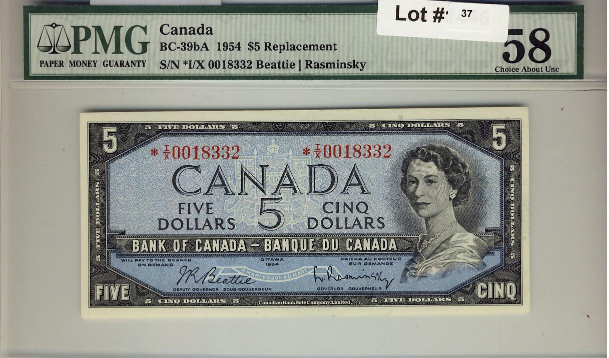 1954 $5 mod.repl. BC-39bA *I/X 0018332 PMG 58