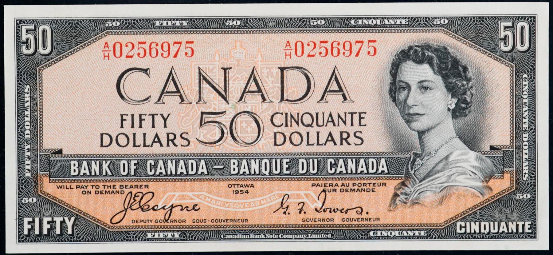 1954 $50 BC-34a #A/H0256975 Legacy Currency Grading Superb Gem Uncirculated-66PPQ. This is a pristine issue with great eye appeal, good margins and superb embossing.