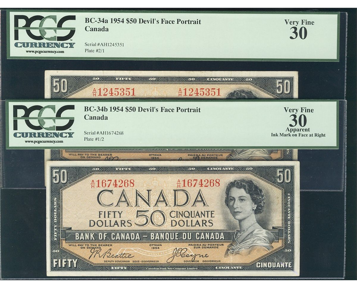 1954 $50 BC-34a & BC-34b PCGS VF30. Lot of 2 notes with the 34B designated Apparent.