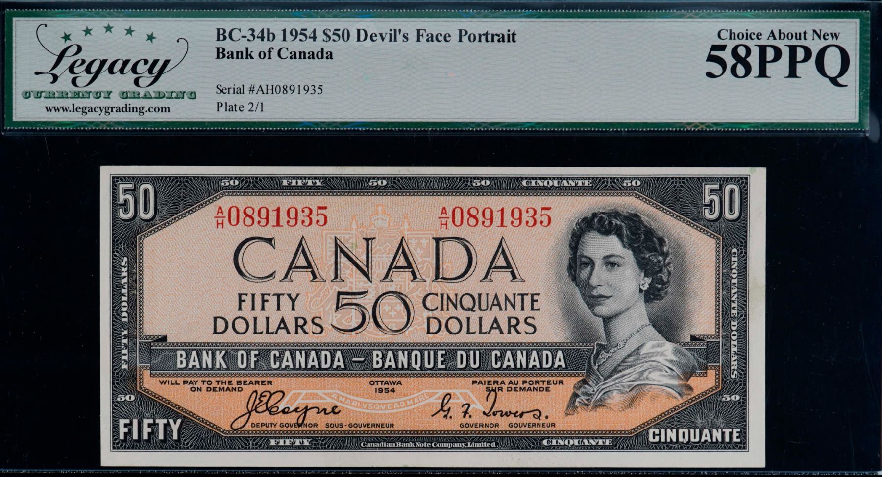 1954 $50 BC-34b #A/H0891935 Legacy Choice About Uncirculated-58PPQ. Devil's face.