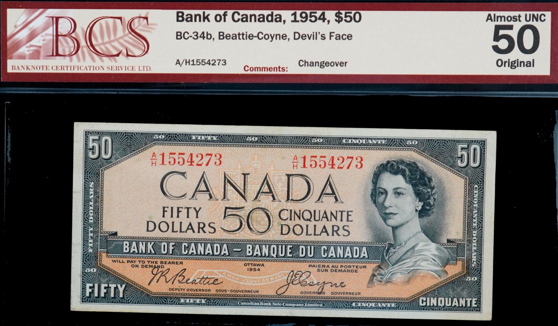 1954 $50 BC-34b #A/H1554273 BCS About Uncirculated-50 Original