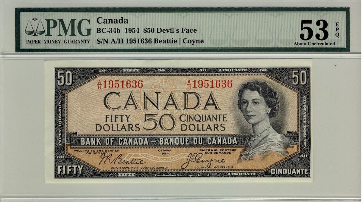 1954 $50 BC-34b #AH1951636 PMG AU53 EPQ"
