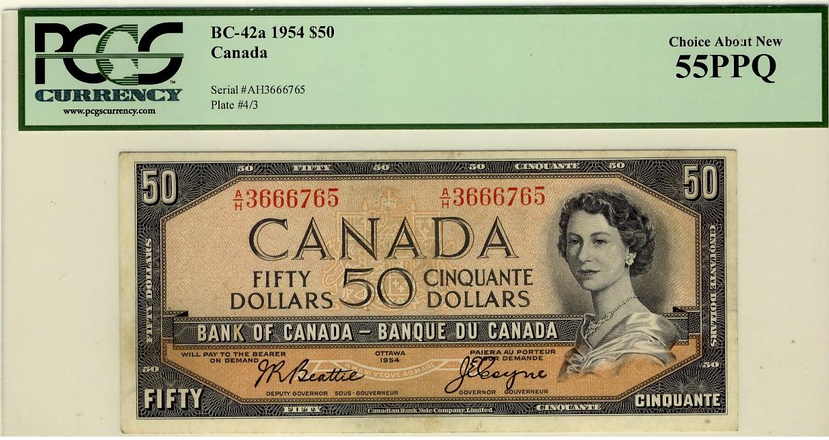 1954 $50 BC-42a A/H3666765 PCGS AU55