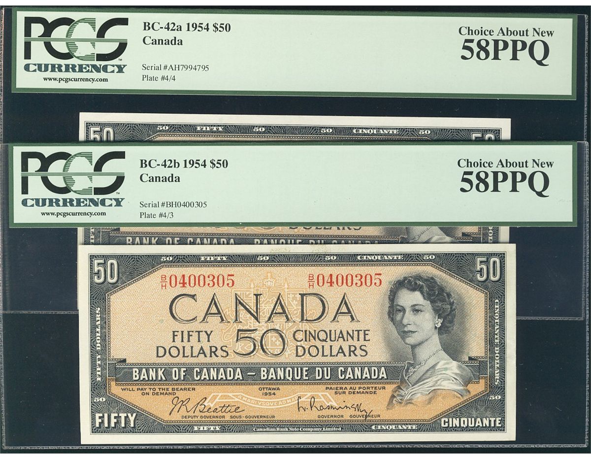 1954 $50 BC-42a & BC-42b PCGS AU58PPQ. Lot of 2 notes.