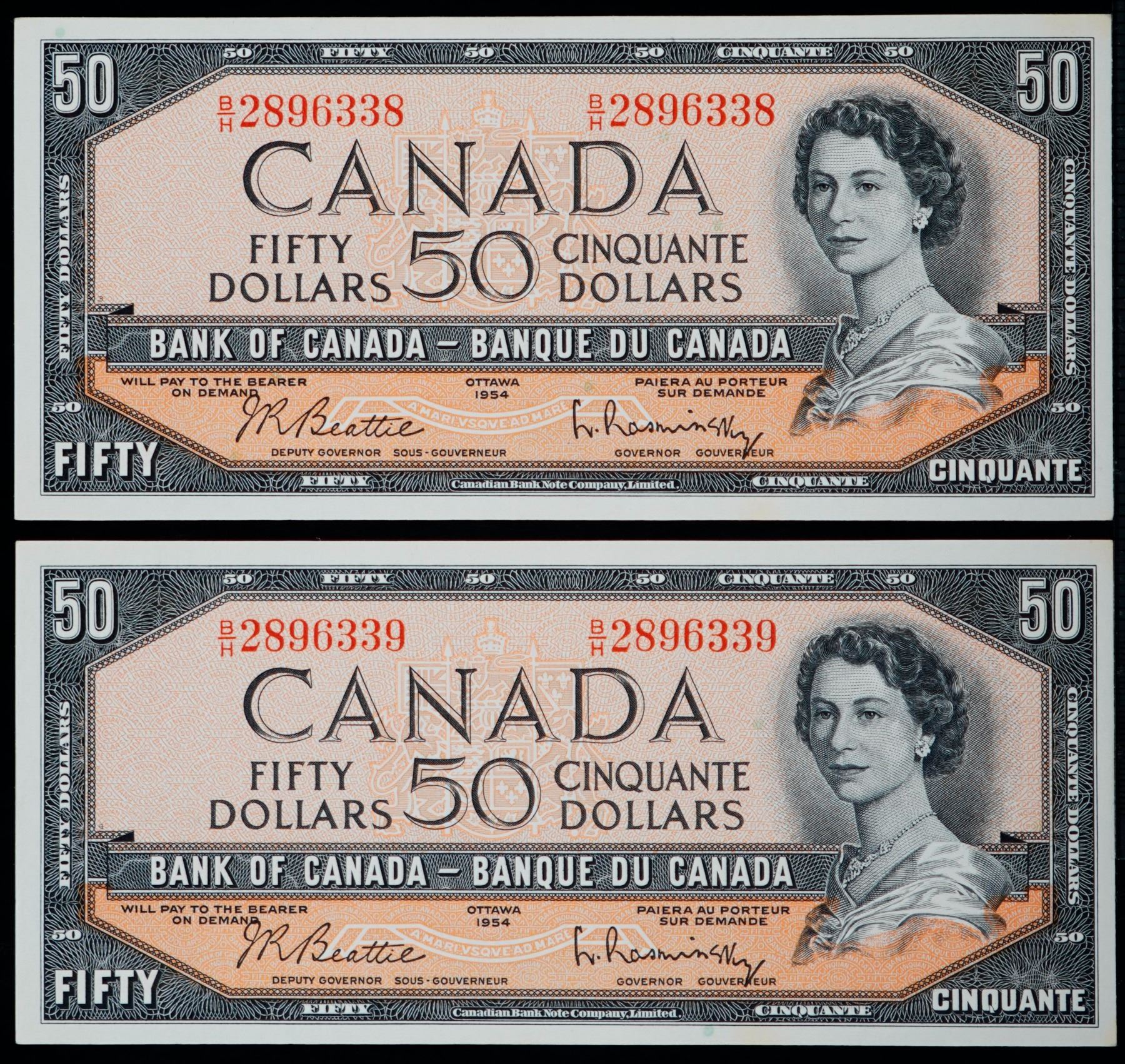 1954 $50 BC-42b #B/H2896338-6339 Lot of 2 consecutive notes Choice to Gem Uncirculated.
