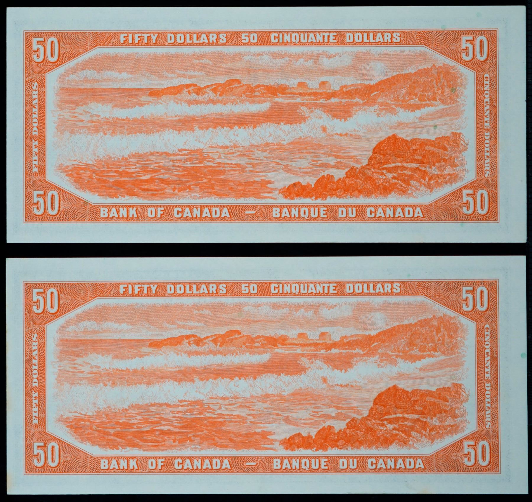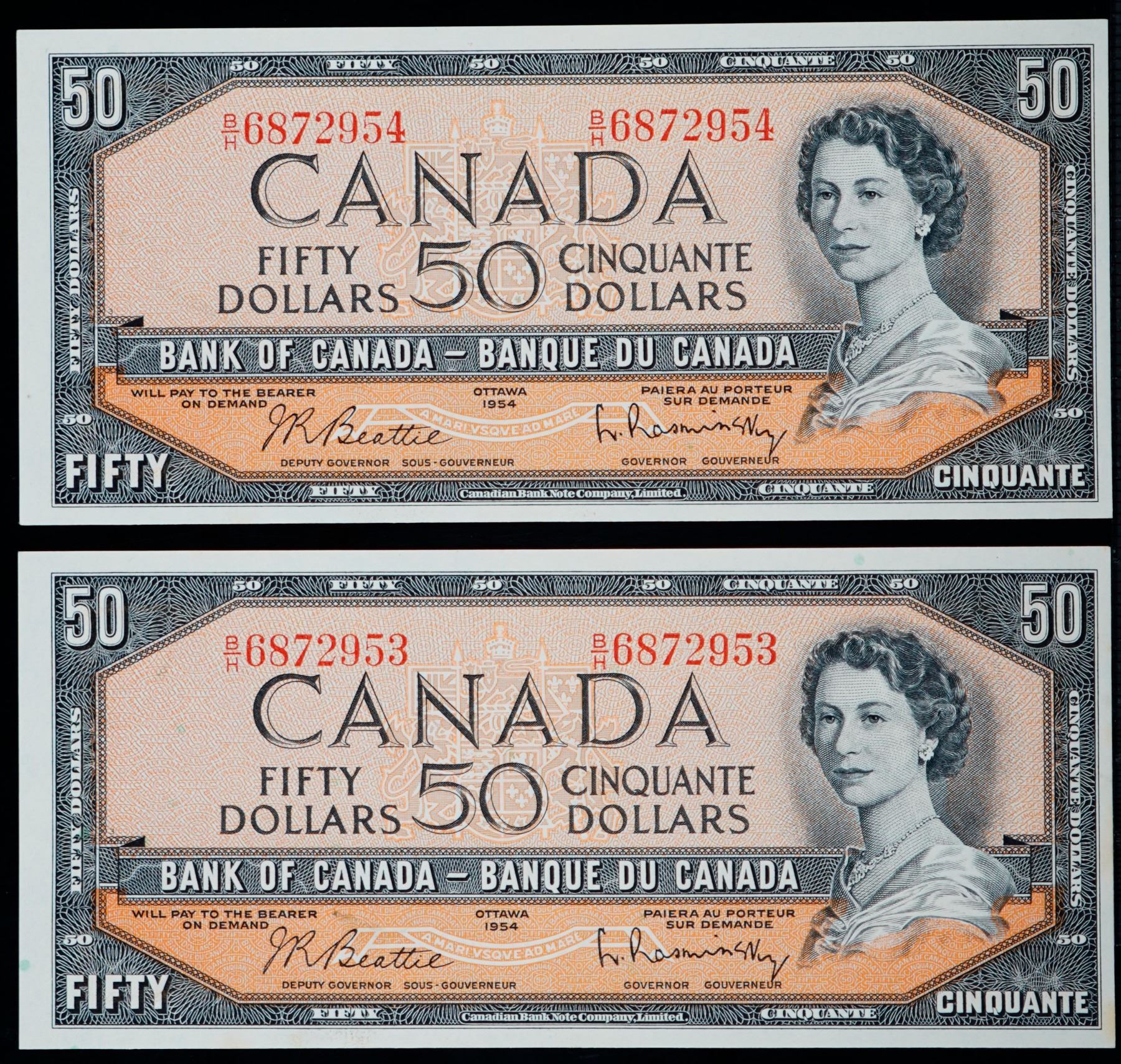 1954 $50 BC-42b #B/H6872953-2954 Lot of 2 consecutive notes Choice Uncirculated.