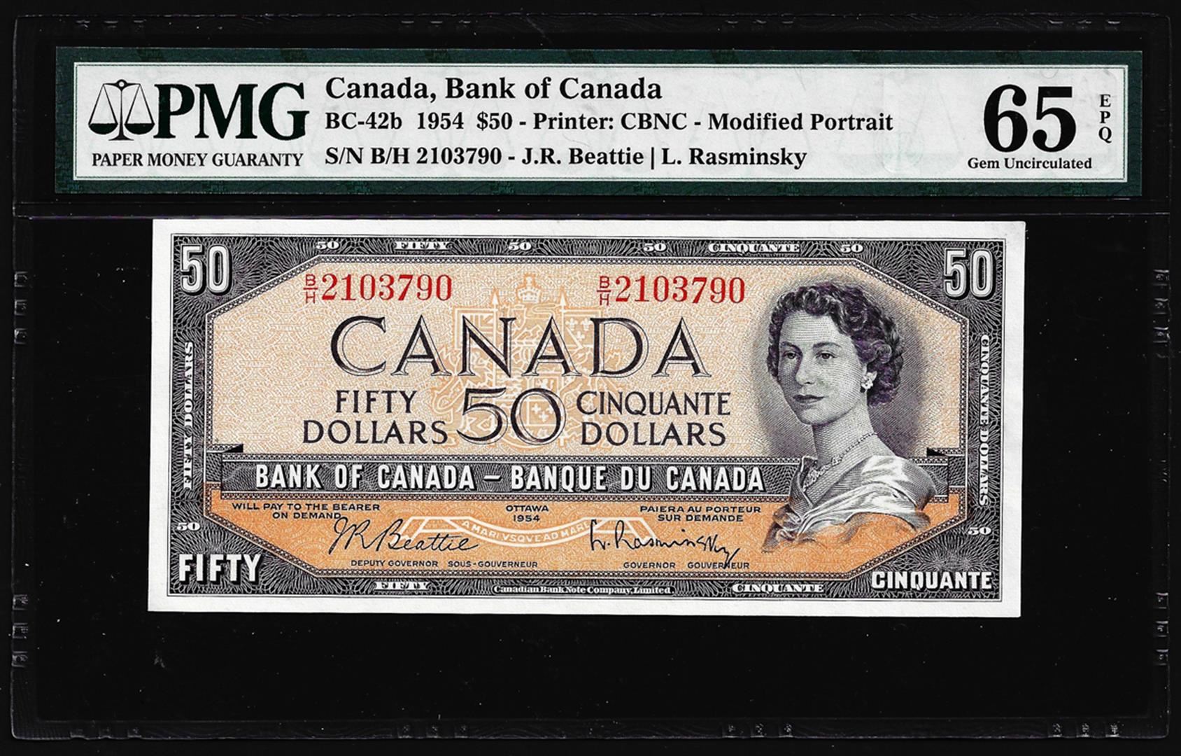 1954 $50 Bank of Canada Note BC-42b PMG Gem Uncirculated 65EPQ