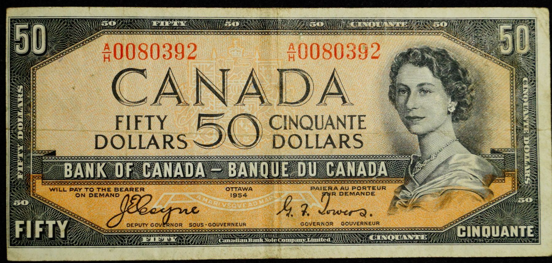 1954 $50 Dollar BC-34a, Bank of Canada 'Devil's Face' Banknote