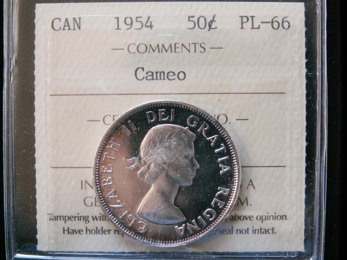 1954 50¢ ICCS PL66 Cameo. Only one example finer.