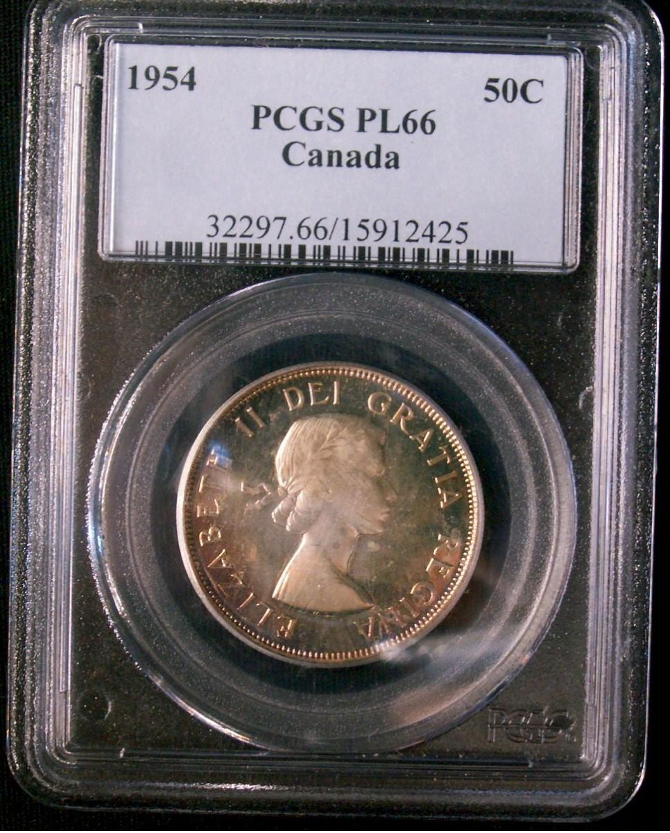 1954 50¢ PCGS PL66. Very light golden tint.