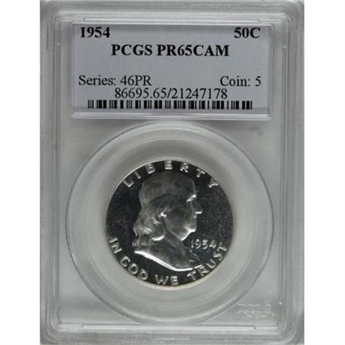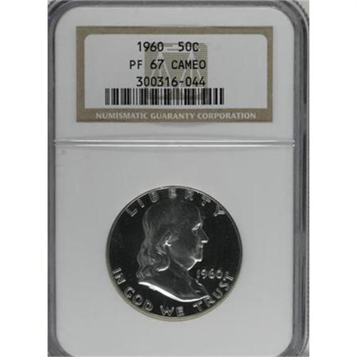 <B>1954 50C PR65 Cameo PCGS; 1955 PR66<img border='0' src='http://www.heritagecoins.com/images/star.gif' width=10 height=10> Cameo NGC</B></I> and a <B>1960 PR67 Cameo NGC.</B></I><BR><BR><b>Shipping:</b> Coin/Currency (<a target="_blank" href="http://www.heritageauctions.com/common/shipping.php">view shipping information</a>)