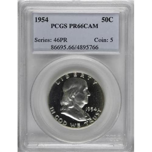 <B>1954 50C PR66 Cameo PCGS.</B></I> PCGS Population (216/248). NGC Census: (389/583). Numismedia Wsl. Price for NGC/PCGS coin in PR66: $180. (#86695)<BR><BR><b>Shipping:</b> Coins & Currency (<a target="_blank" href="http://www.heritageauctions.com/common/shipping.php">view shipping information</a>)