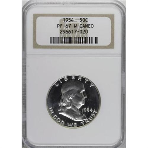 <B>1954 50C PR67W Cameo NGC.</B></I> NGC Census: (456/127). PCGS Population (222/26). Numismedia Wsl. Price for NGC/PCGS coin in PR67: $280. (#86695)<BR><BR><b>Shipping:</b> Coins & Currency (<a target="_blank" href="http://www.heritageauctions.com/common/shipping.php">view shipping information</a>)