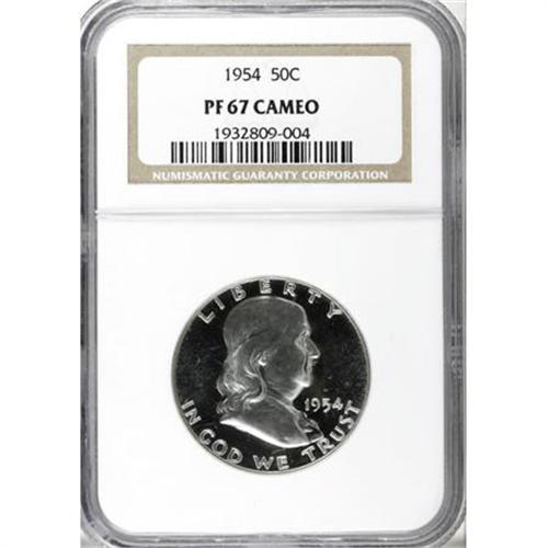 <B>1954 50C PR67 Cameo NGC.</B></I> NGC Census: (461/131). PCGS Population (227/26). Numismedia Wsl. Price for NGC/PCGS coin in PR67: $240. (#86695)<BR><BR><b>Shipping:</b> Coins & Currency (<a target="_blank" href="http://www.heritageauctions.com/common/shipping.php">view shipping information</a>)