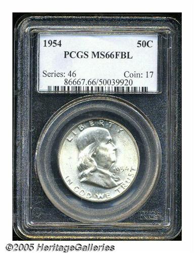 <B>1954<50C> MS66 Full Bell Lines PCGS.</B></I> A tough issue to find as a Premium Gem. This piece has bright mint luster with an even hint of light golden wash. Population: 57 in 66, 0 finer (6/05).<BR><I>From The Southern Collection.</B></I>