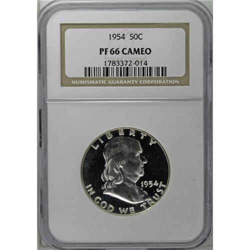 1954 50C PR66 Cameo NGC. A lightly frosted, flashy, an
