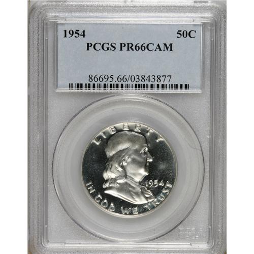 <B>1954 50C PR66 Cameo PCGS.</B></I> PCGS Population (210/0). NGC Census: (380/559). Numismedia Wsl. Price for NGC/PCGS coin in PR66: $180. (#86695)<BR><BR><b>Shipping:</b> Coins & Currency (<a target="_blank" href="http://www.heritageauctions.com/common/shipping.php">view shipping information</a>)