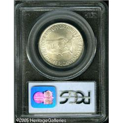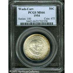 <B>1954 50C Washington-Carver MS66 PCGS.</B></I> Well struck for the issue, with exceedingly bright, frosty surfaces that are very slightly abraded, and exhibit pretty cranberry-red, bright-green, and russet patina, near the obverse peripheries. Population: 25 in 66, 0 finer (1/05). Lot:8631
