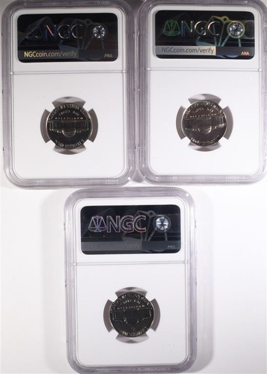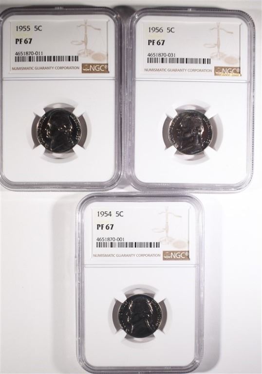 1954, 55 & 56 JEFFERSON NICKELS, NGC PF-67