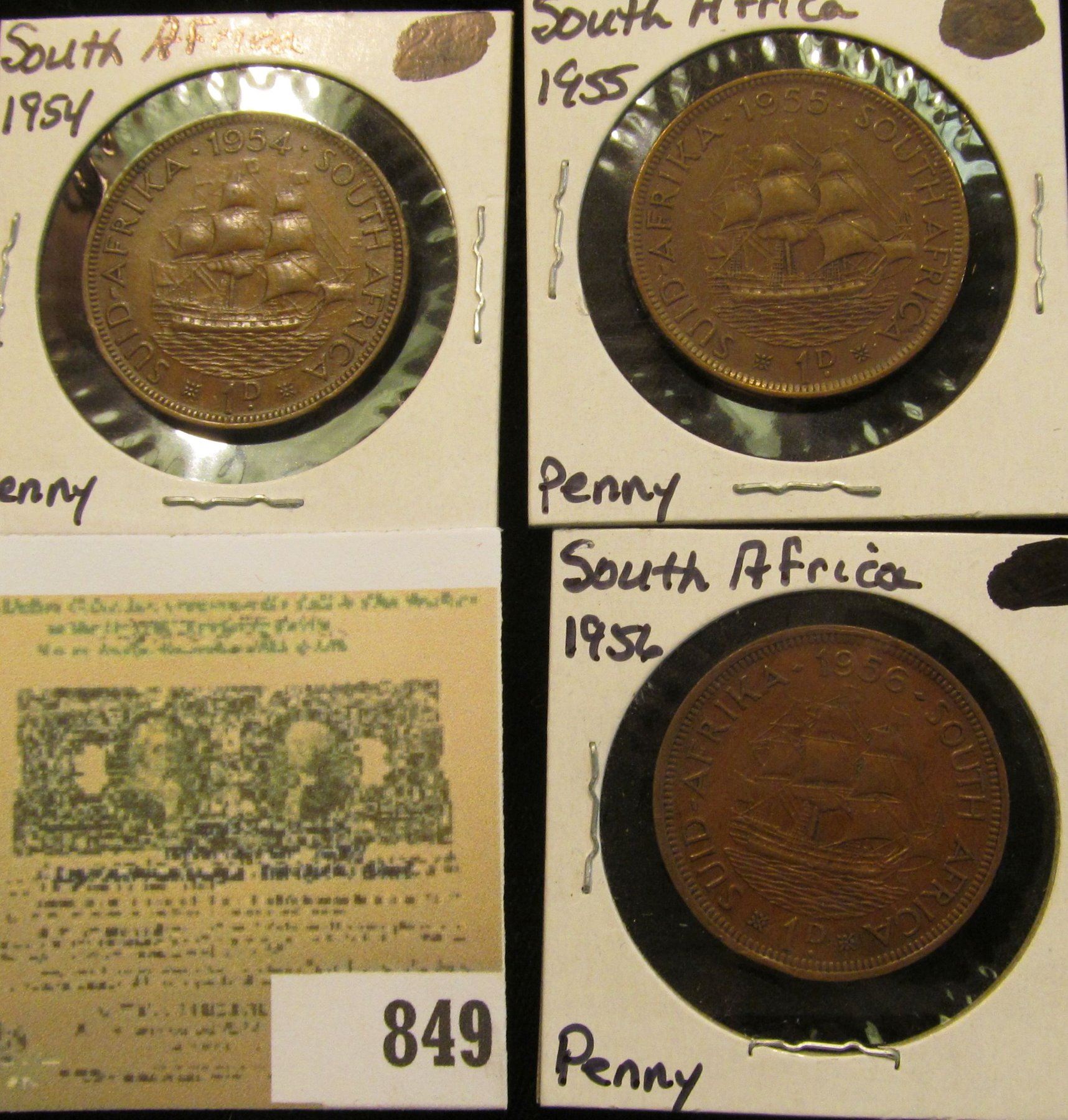 1954, 55, & 56 South Africa Large Pennies. VF-EF.