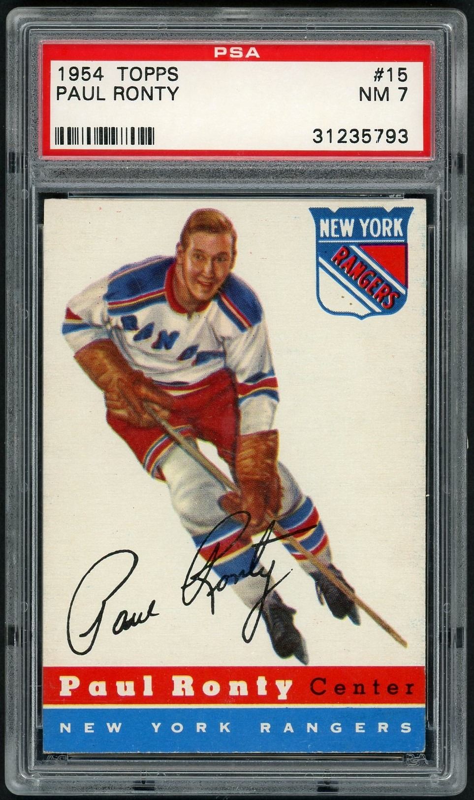 Rangers forward had a good pro career, where he finished 6th in scoring on three separate occasions. Random, but true. This sharp 54 Topps card is an attractive NM 7, graded by PSA!