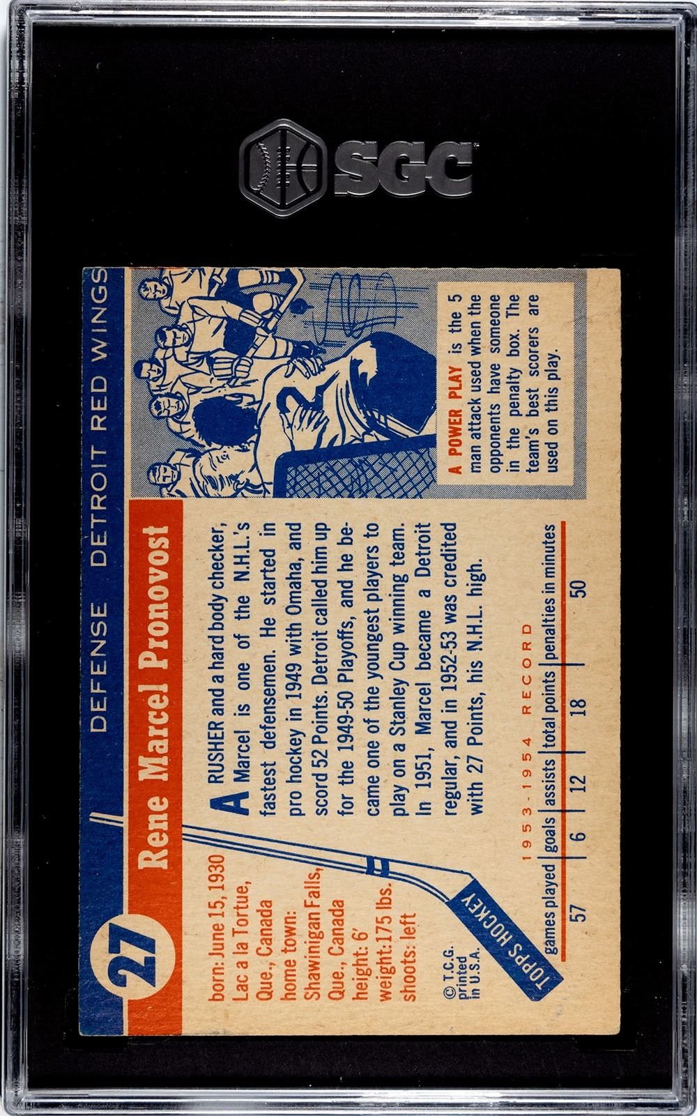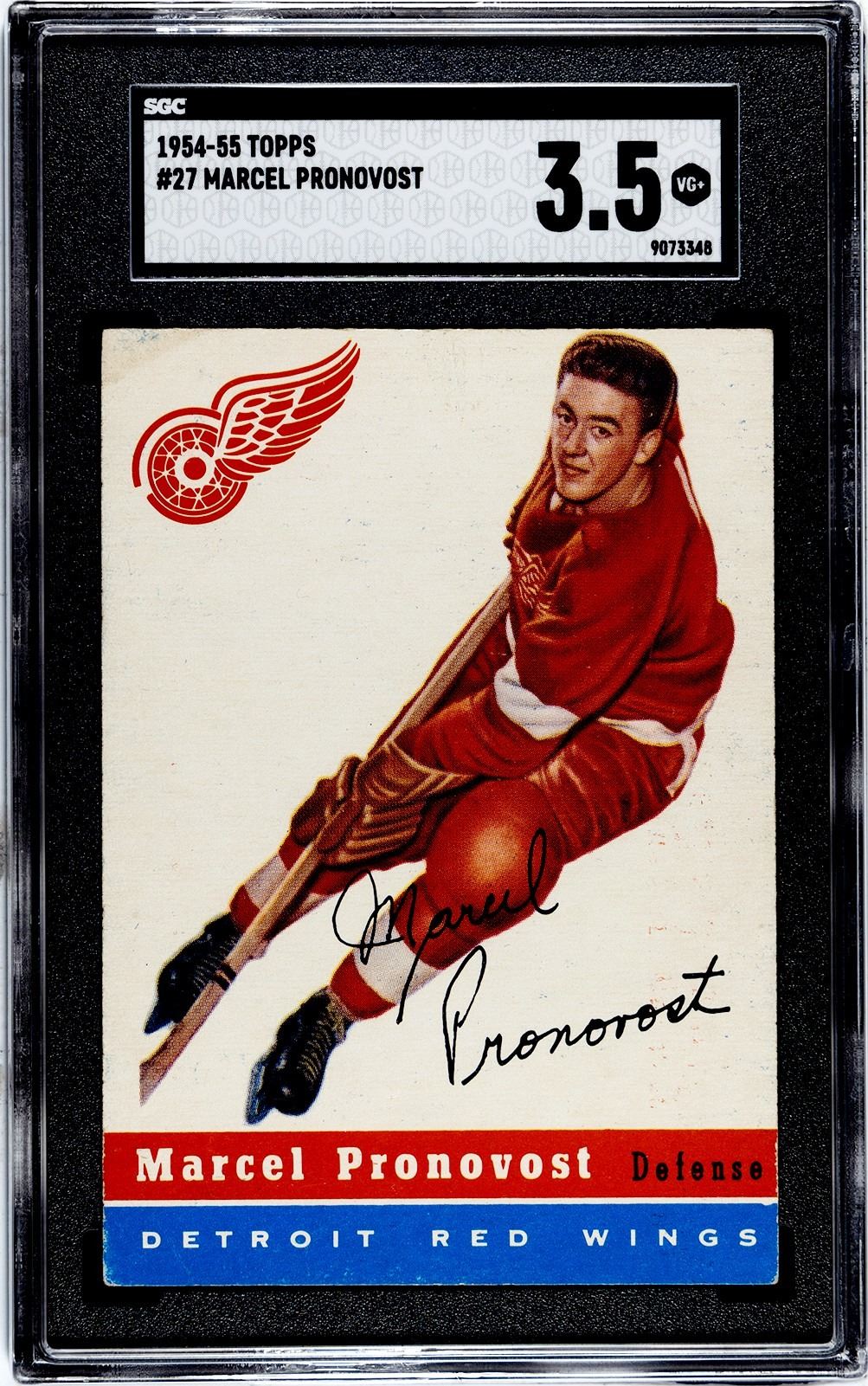 HOFer Pronovost played 20 NHL seasons, winning five Stanley Cups, and was one of the top D-men in the league garnering multiple all-star selections while finishing top-5 Norris Trophy voting five times. Graded 3.5 VG+ by SGC. Affordable vintage HOFer!