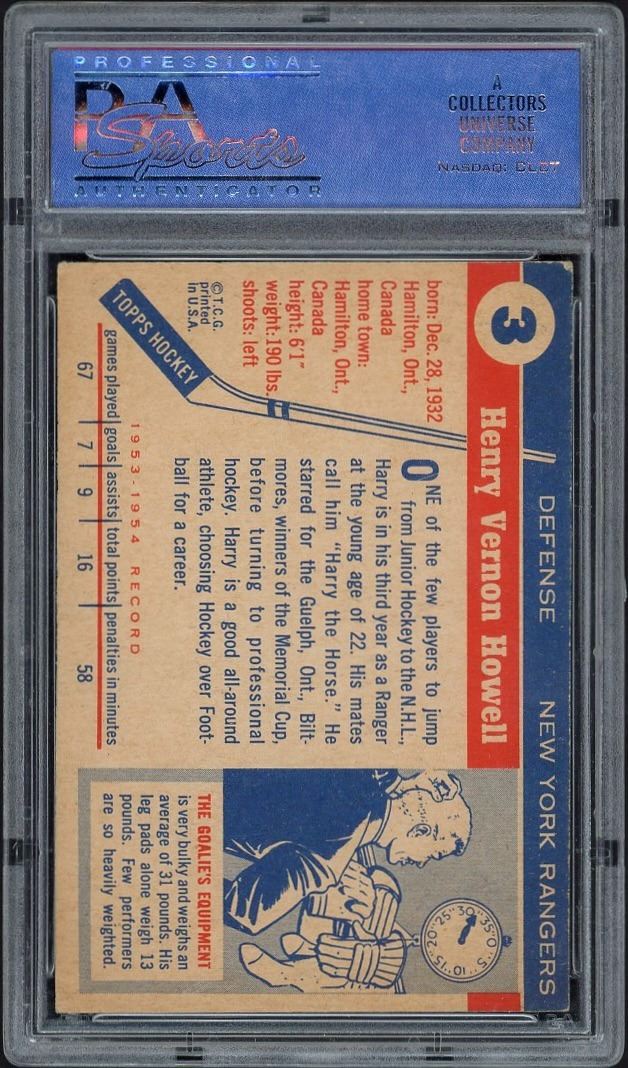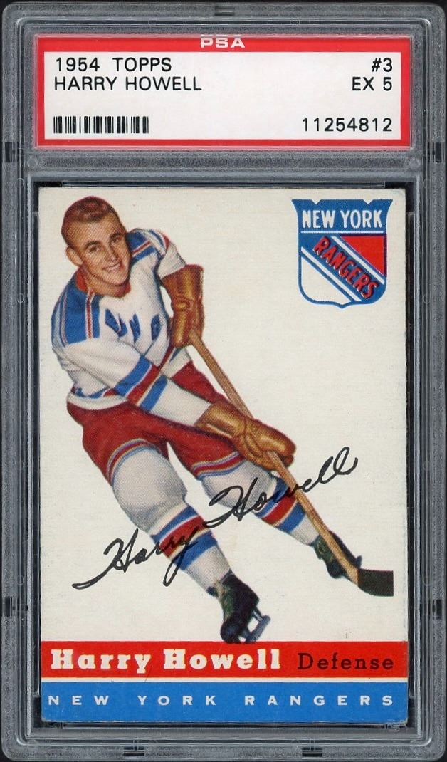 Solid upper-mid grade 54 Topps Harry Howell, NYR all-time great and HOFer. Graded 5 EX by PSA.