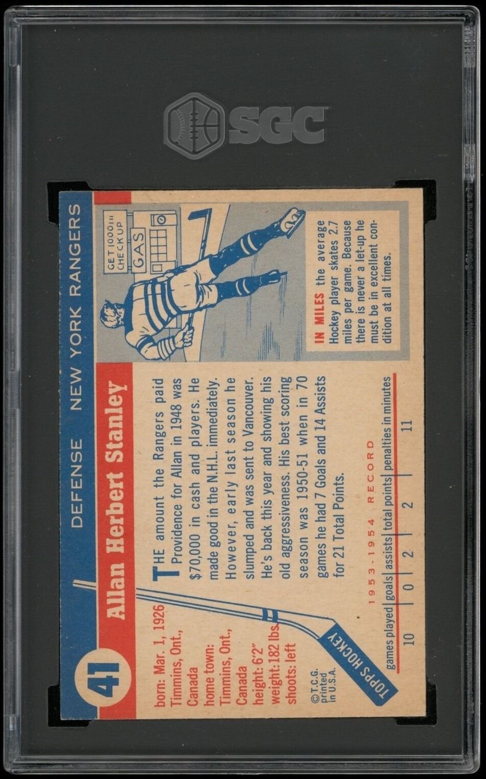 Absolutely stunning example of this HOFer's 54 Topps offering. Pack fresh in all respects. Graded 8 NM-MT by SGC. Low pop 1 of 7, only 2 graded higher by SGC.