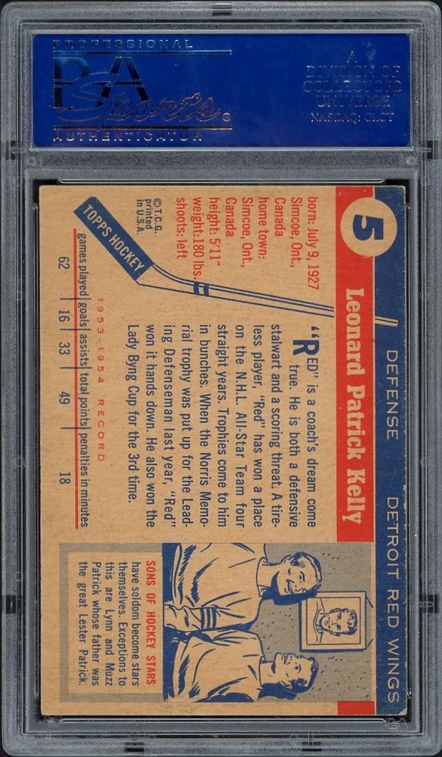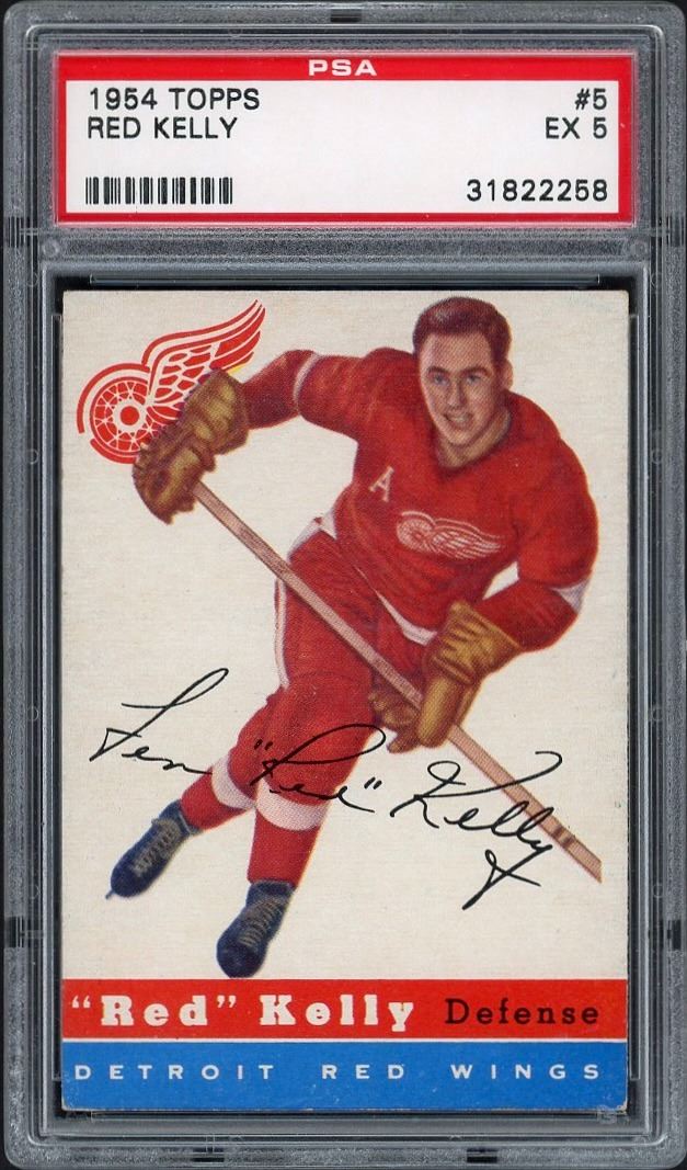 Superb example of one of the sets key cards. Kelly is a top tier HOFer who thrived in the NHL as both a defenseman and a forward. This classic card from a classic and highly collectible set, grades 5 EX by PSA!