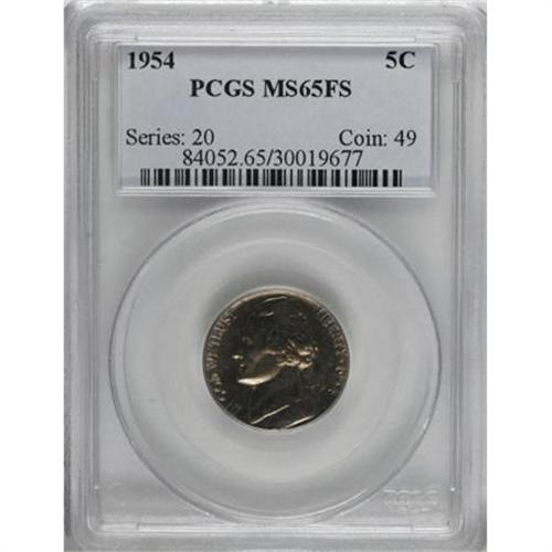 <B>1954 5C MS65 Full Steps PCGS.</B></I> PCGS Population (37/3). NGC Census: (1/5). (#84052)<BR><BR><b>Shipping:</b> Coins & Currency (<a target="_blank" href="http://www.heritageauctions.com/common/shipping.php">view shipping information</a>)